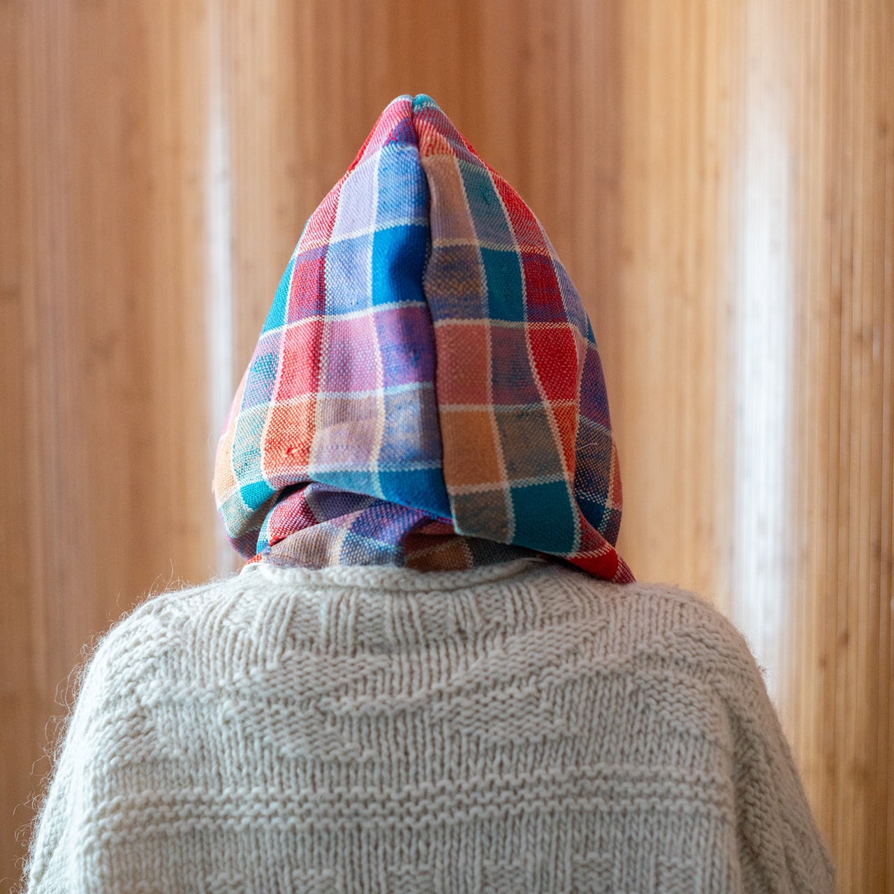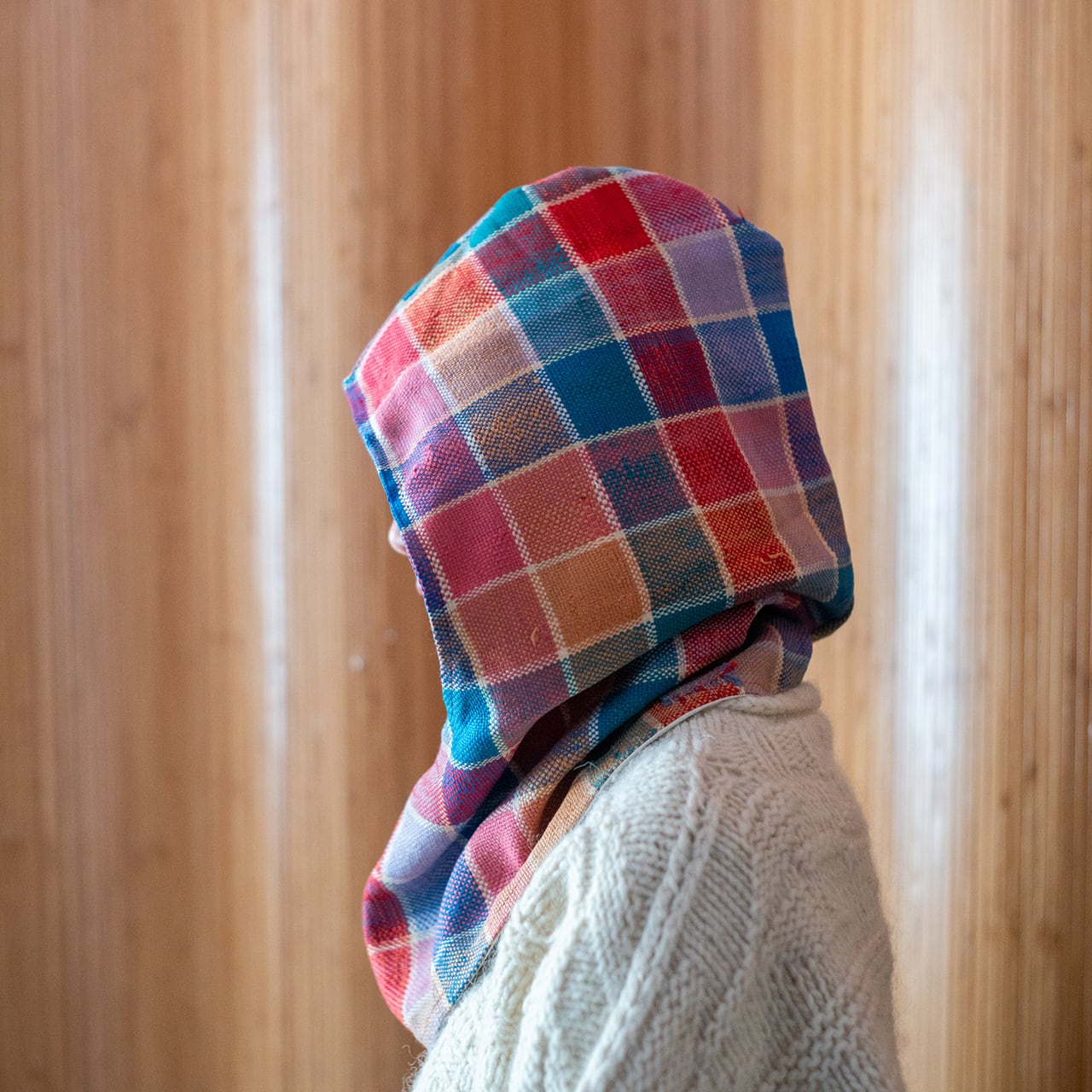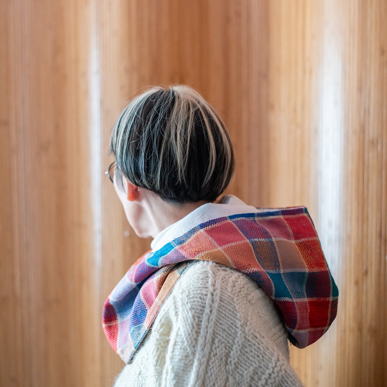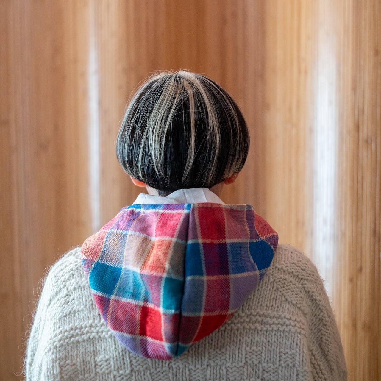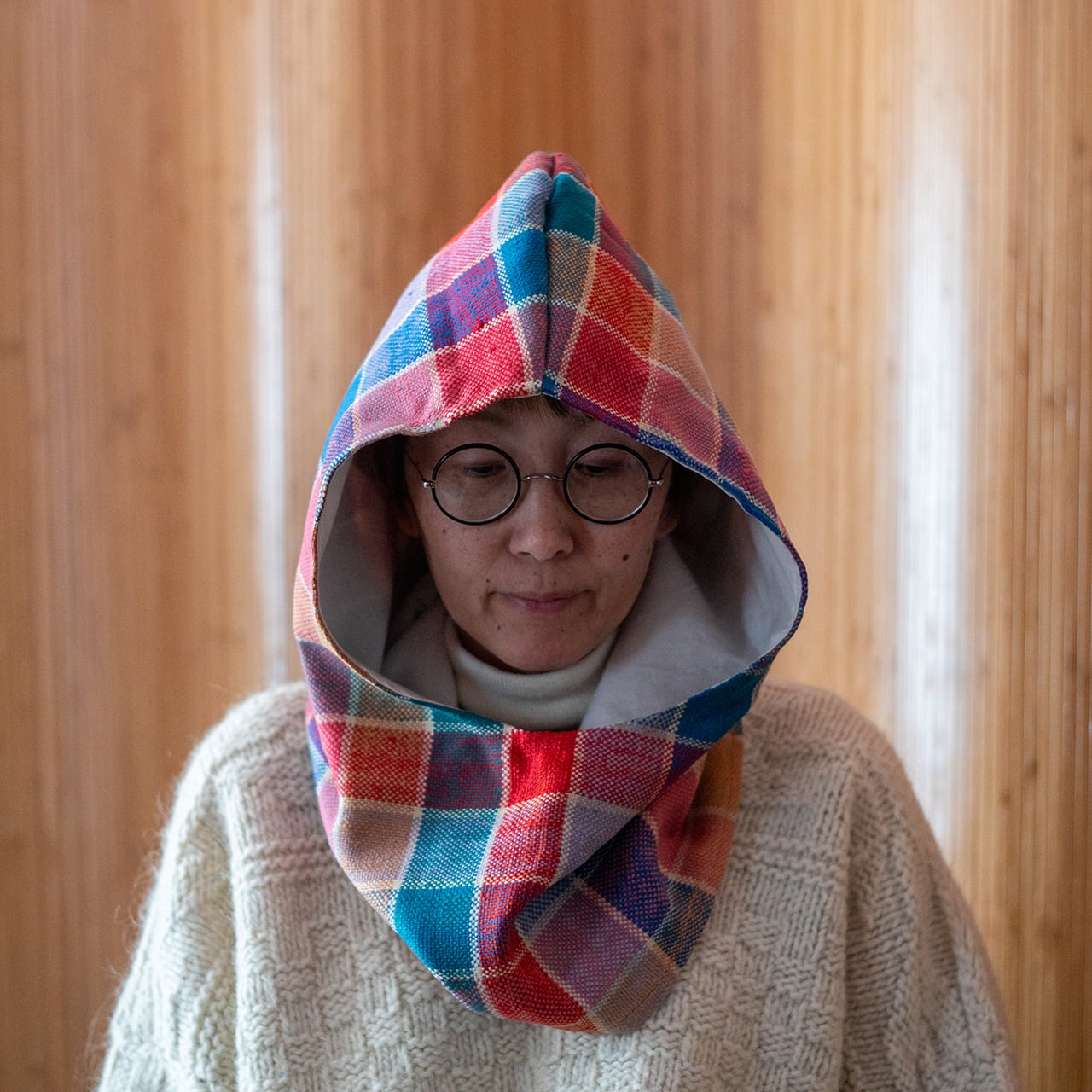 防寒にもファッションのアクセントにも使えるシンプルな頭巾タイプのフード。
