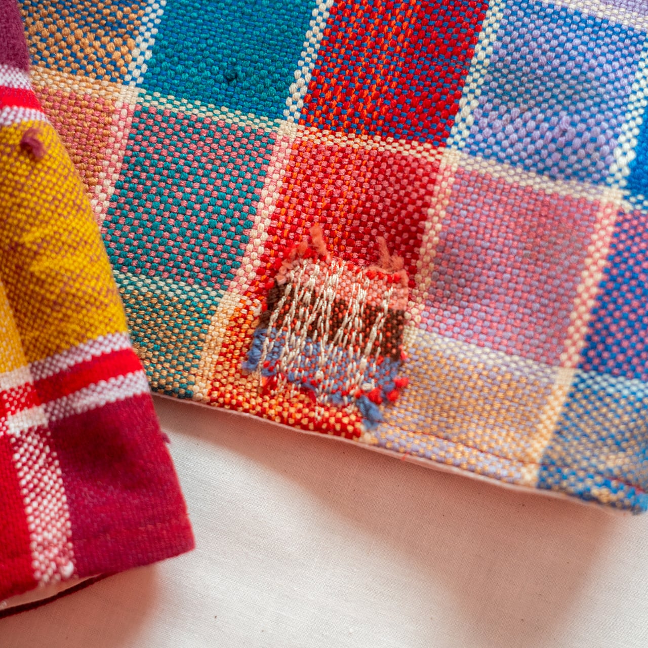 古い布となるので補修箇所があったりする箇所も見られますが、それらも可愛いさの一因だと考えてますので、その感覚を共有できる方に喜んでいただければ嬉しいです。