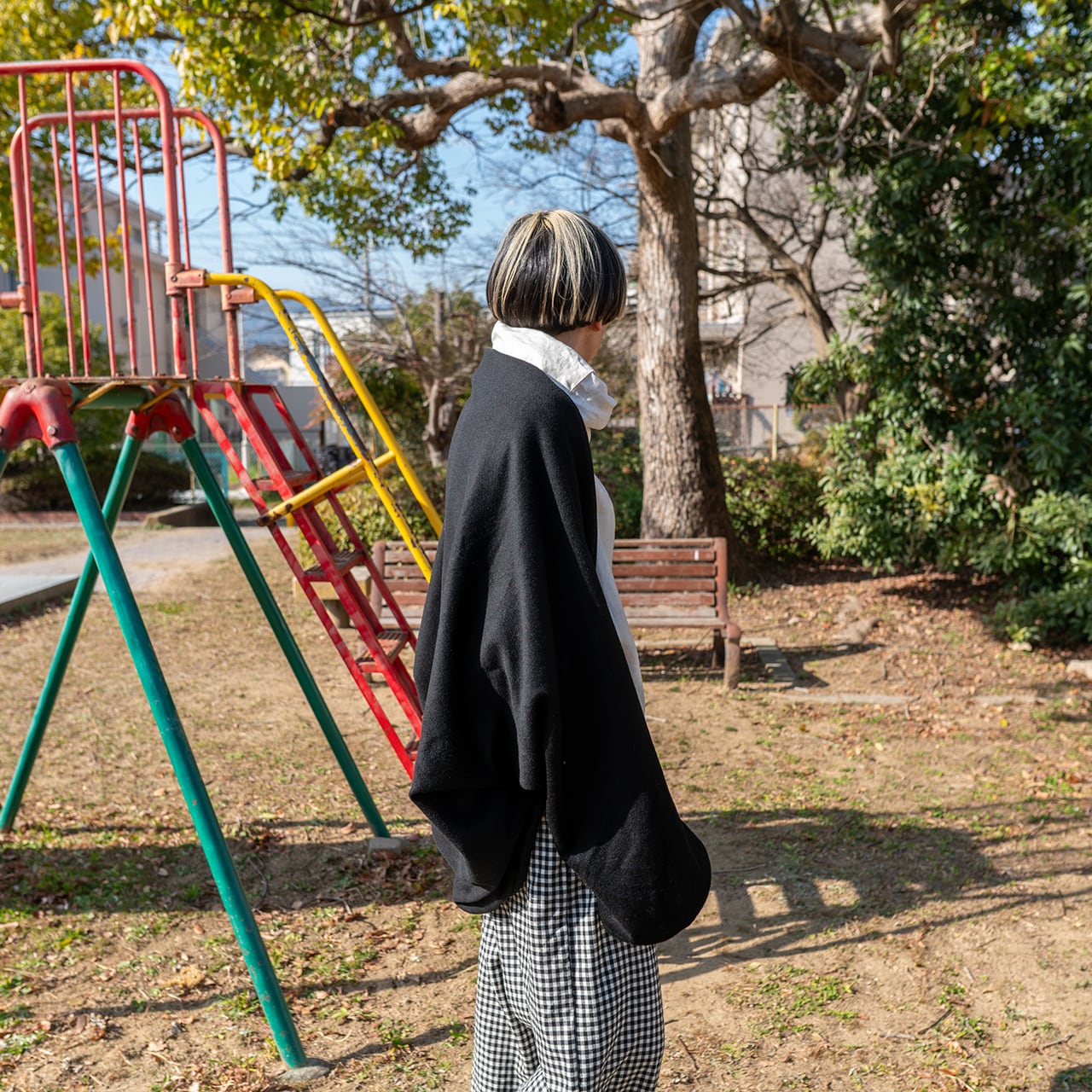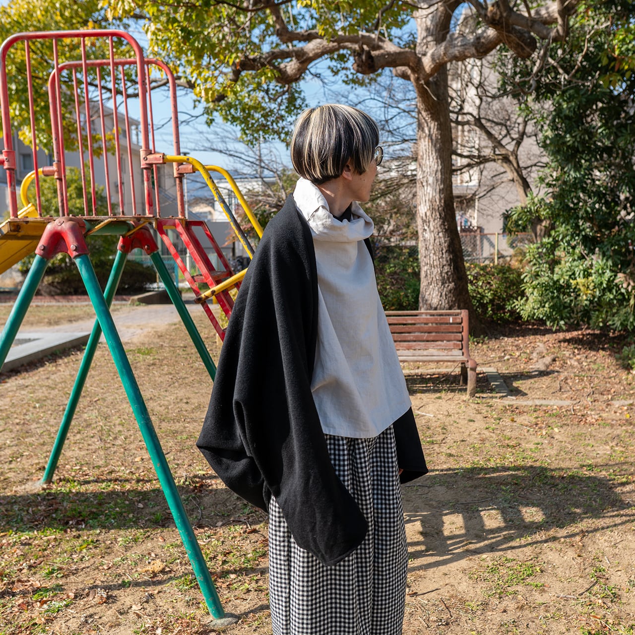 ボレロの様な使い方がベースとなっており、袖を通して羽織ってみたり、半分に折り畳み肩掛けの巻物感覚でも使っていただけます。