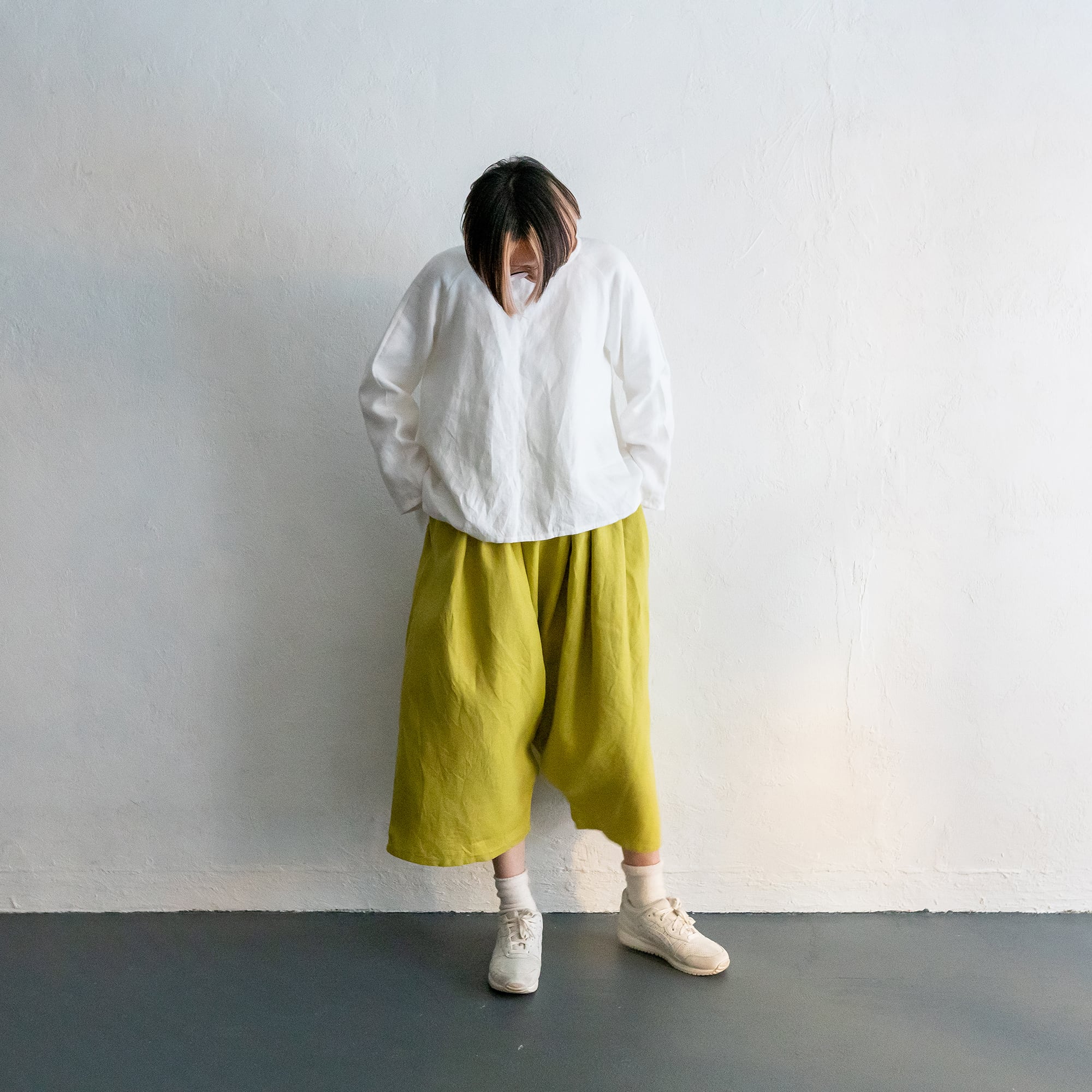 一般的なサルエルではなかなか足捌きの限界がありますが、こちらのタイプはかなり足捌きが軽快で、このボリューム感からは想像出来ないほどの軽い履き心地を感じて頂けると思います。