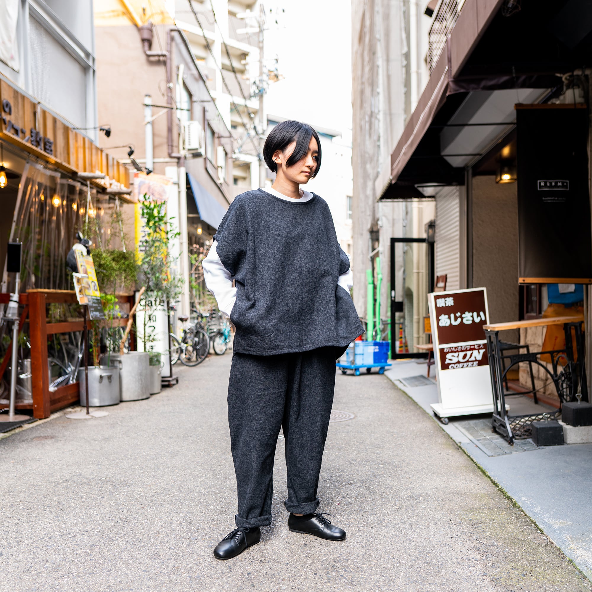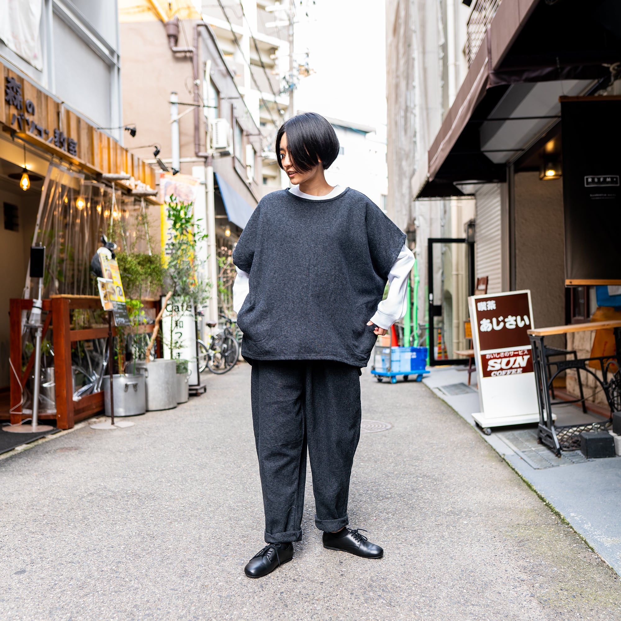 こちらも男女体型を問わず、なるべく幅広い体格の違う方々それぞれが着た際にシルエットもキープ出来るようにデザインしました。