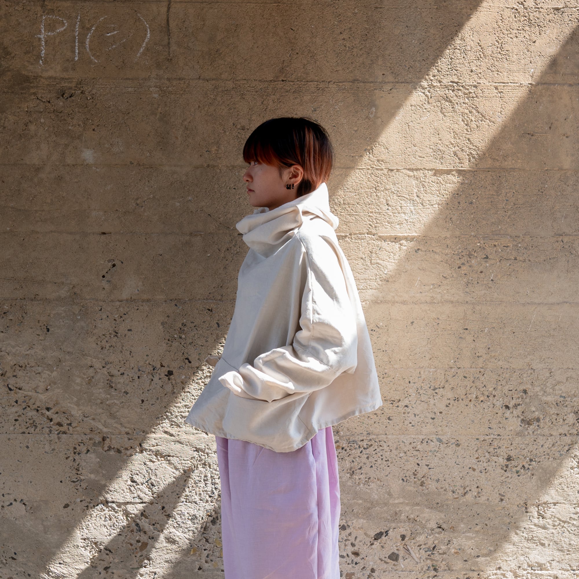 ワンピースの上に重ねての着用するといった可愛く特徴的なスタイリングもオススメ。