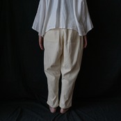 短めのトップスと合わせて、このパンツの最大限のデザインを活かす着こなしも、ワンピースやロングスモックの下に履いてもスッキリみえるように、合わせるアイテムで変化を楽しんでもらえるデザインとなっています。
