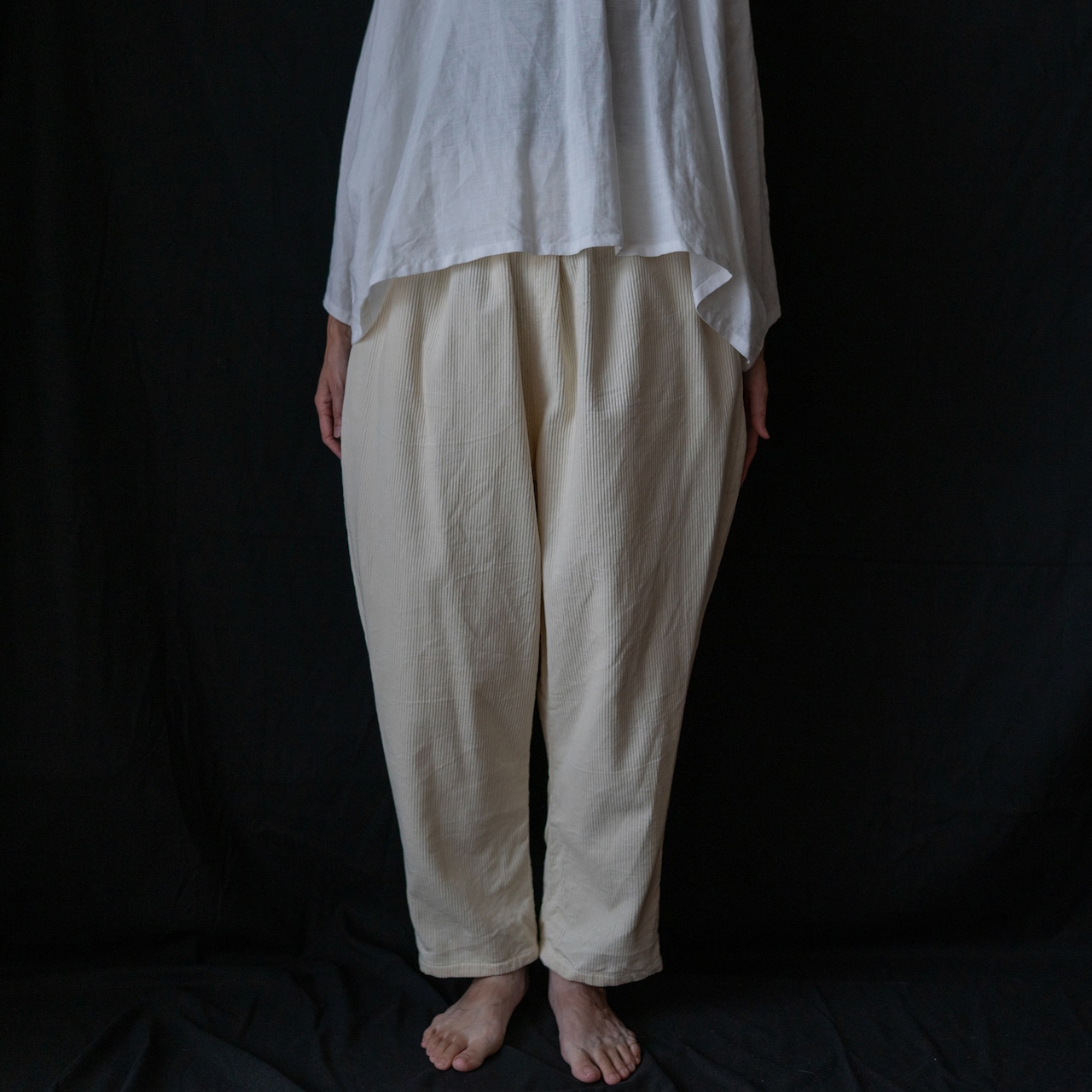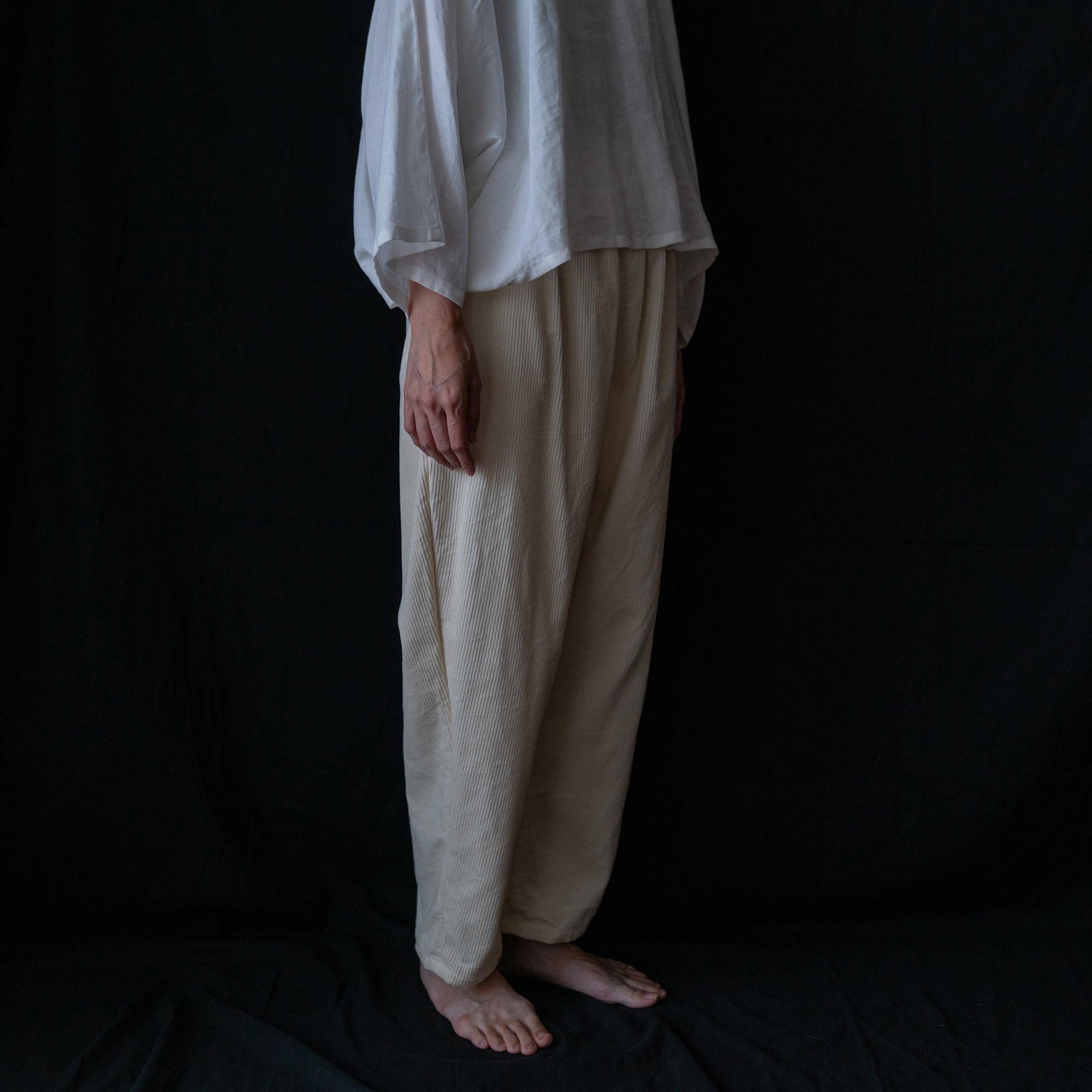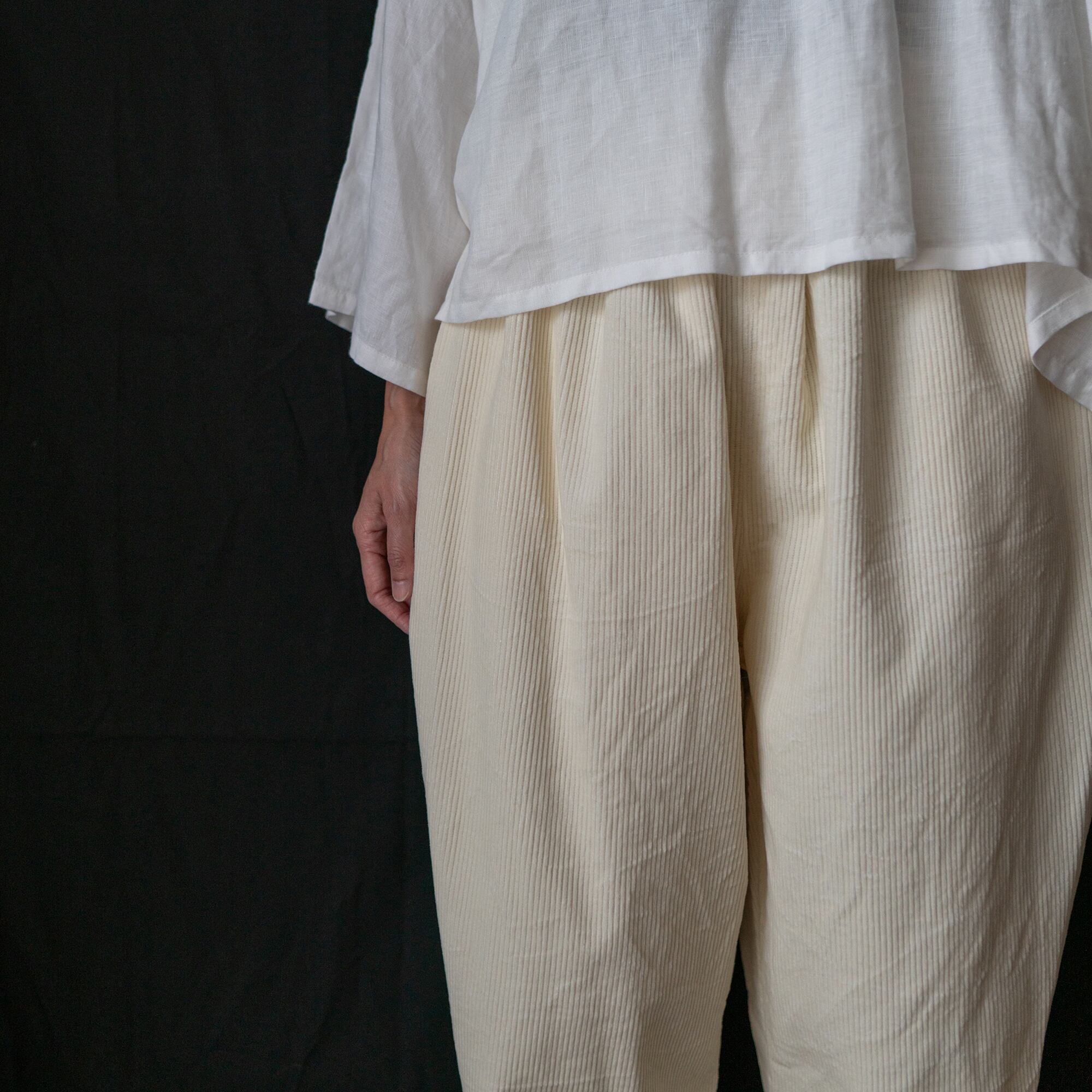 長く悩み、ようやくカタチとなったボリューミーなパンツ。