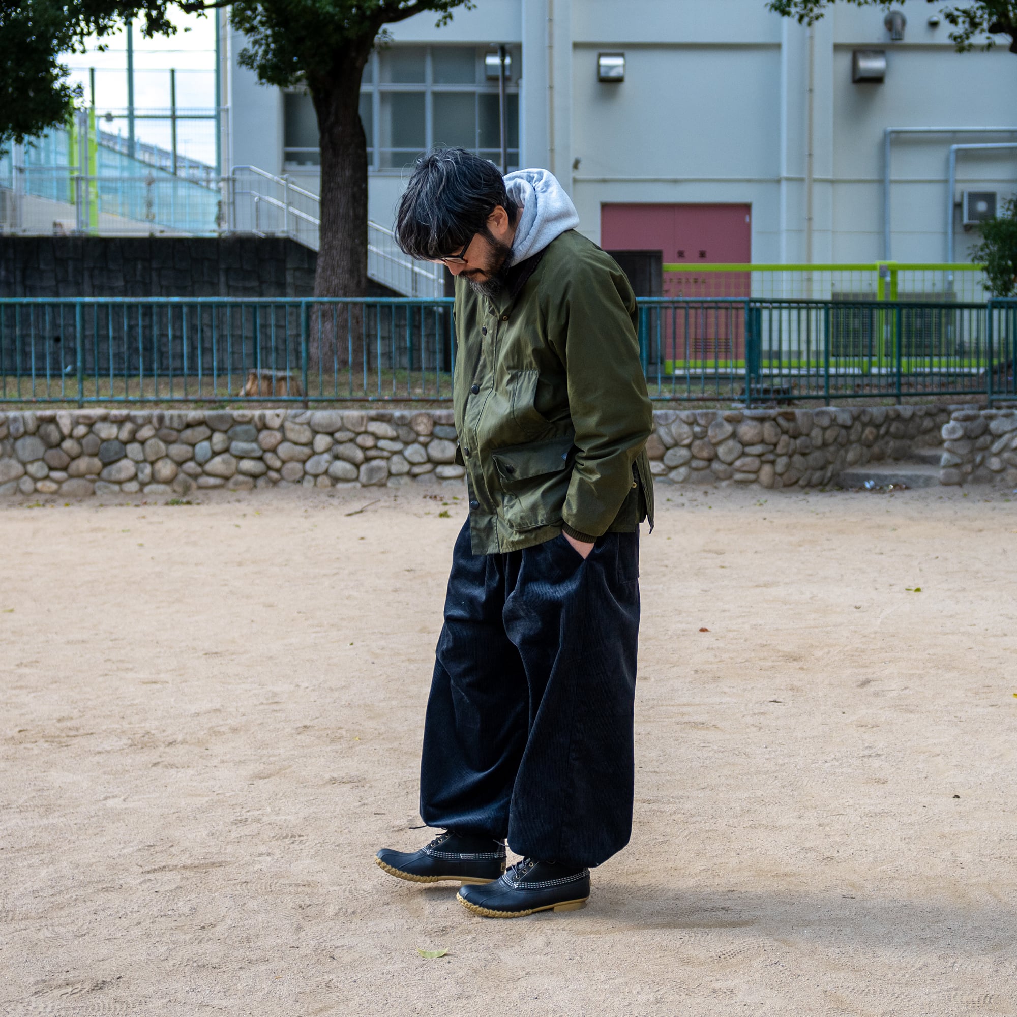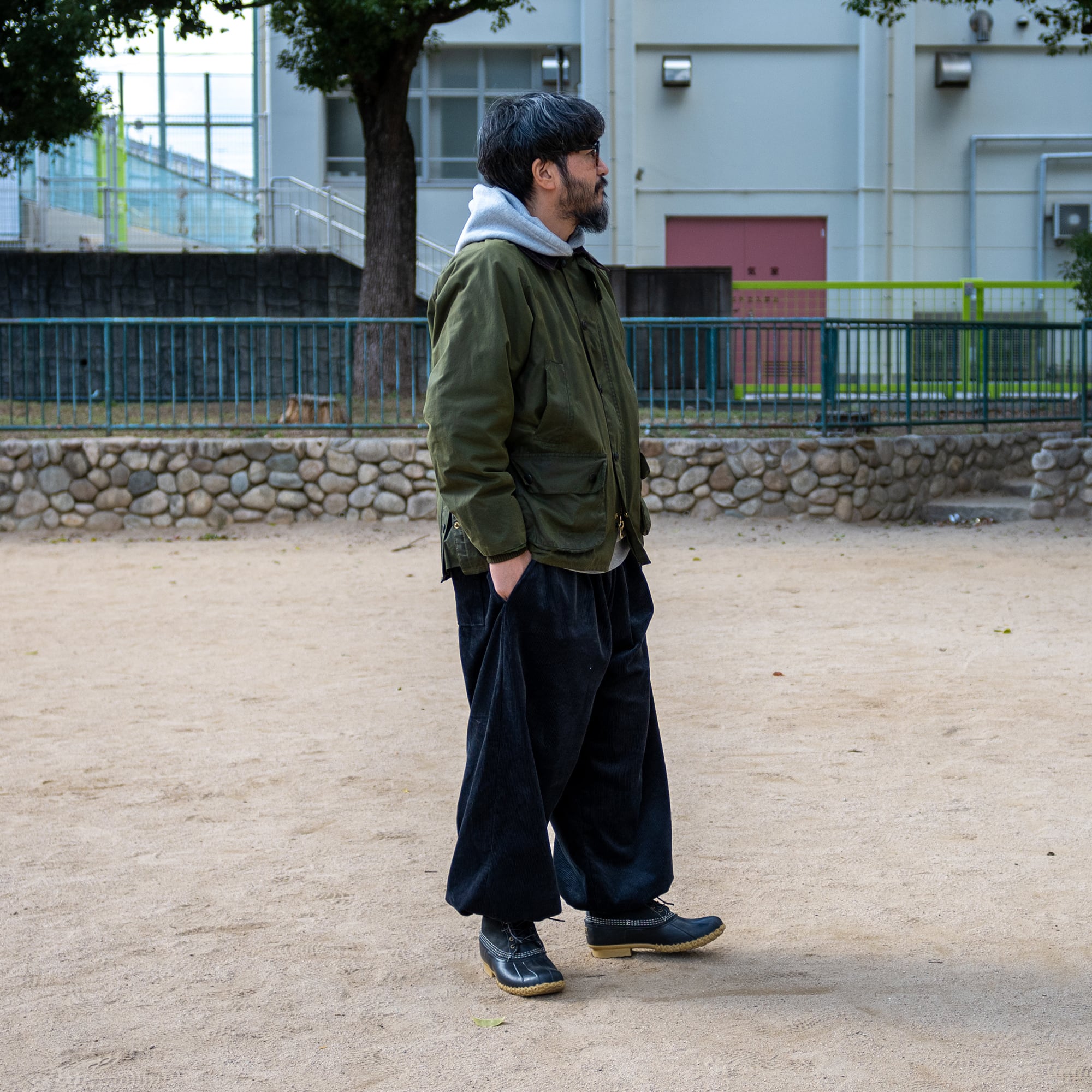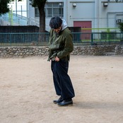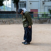 裾を絞ればカジュアルな雰囲気でかなり太めのClown Pantsのようなシルエットのパンツ
